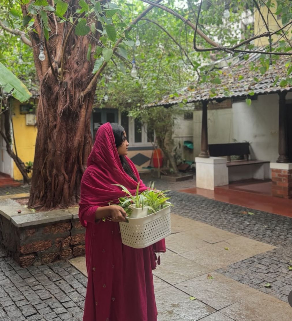 working from her quiet studio in Kerala.